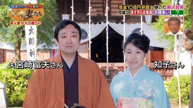 老舗旅館女将、宮﨑知子(ともこ)さん、39歳。名門お嬢様学校育ちの箱入り娘だった知子さんが、2006年に嫁いだお相手は100年続く老舗旅館の御曹司だ。といえば誰もがうらやむ結婚に見えるが、ふたを開けてみれば驚愕の真実があった。この旅館には、10億円もの借金があった。そこで女将を待ち受けていた試練とは…?