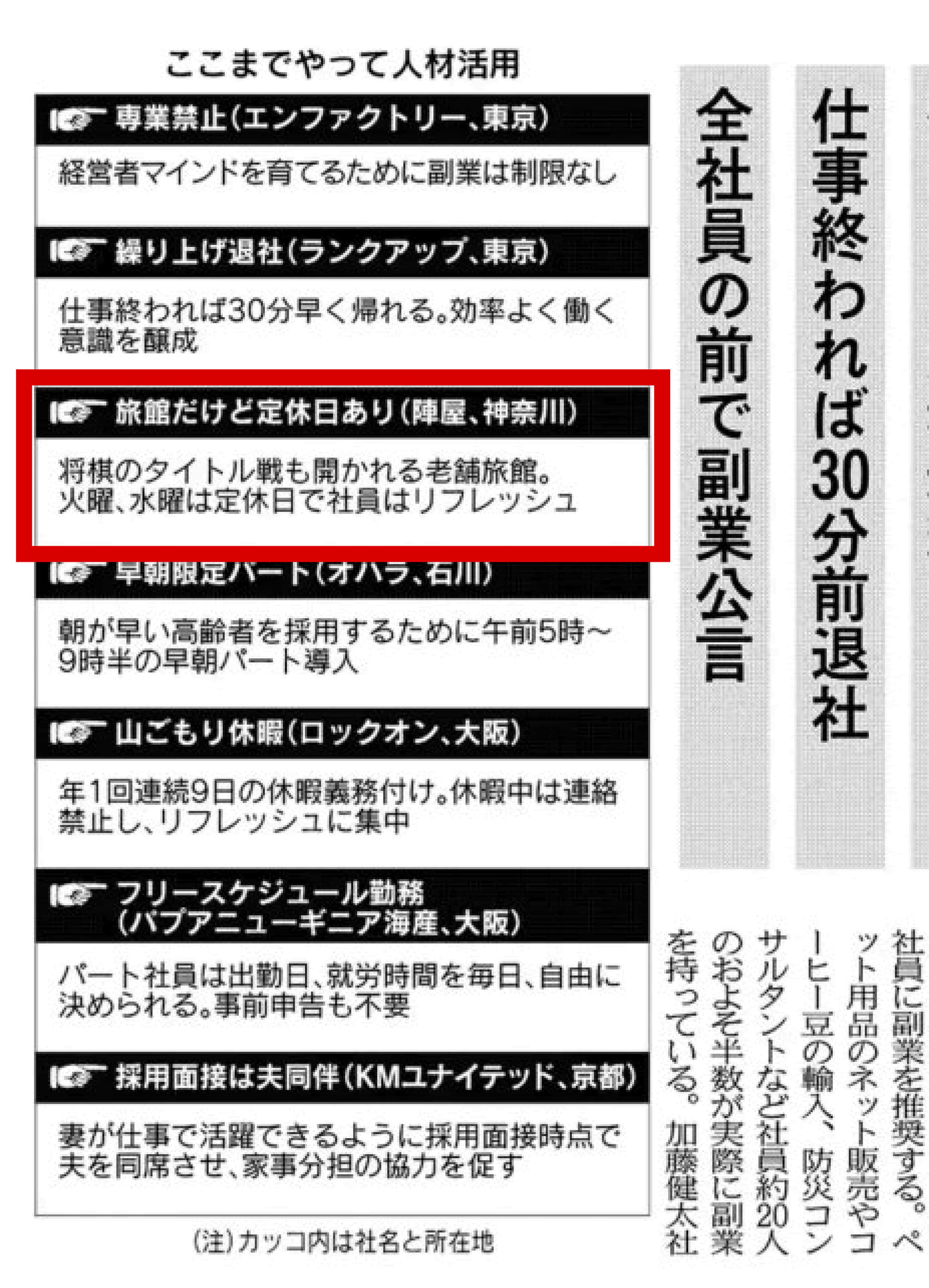 日経新聞新聞コラム「ここまでするぞ!働き方改革」に掲載されました 2026 1/07 お知らせ 2017年9月6日 日経新聞新聞コラム「ここまでするぞ!働き方改革」に掲載されました。 ※画像クリックで詳細をご覧いただけます。 お知らせ ニッポンの仕事人 週刊リーダー列伝で紹介されました 日本経済新聞一面の社説「春秋」に取り上げられました