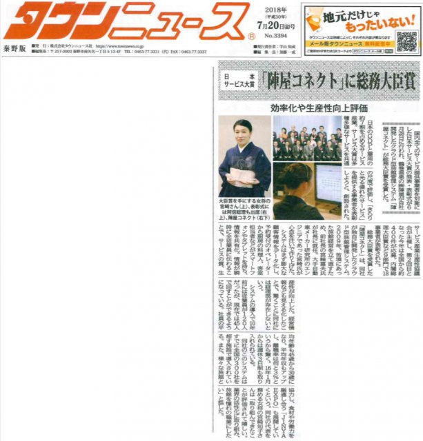 「陣屋コネクト」が総務大臣賞を受賞した。
