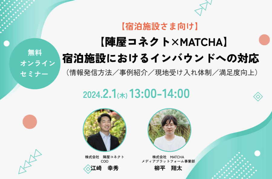 陣屋コネクト×MATCHA 「宿泊施設におけるインバウンド対応事例」紹介Webセミナーを開催しました