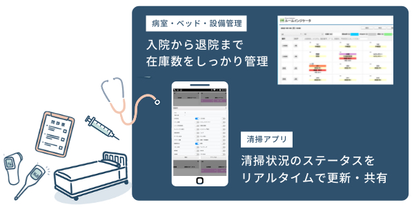 清掃アプリを利用することで、各病室ごと、ステータスごとに清掃箇所のチェックを行えるようになります。