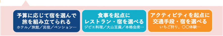 - 宿泊施設・飲食店など旅の計画が立てやすくなります。